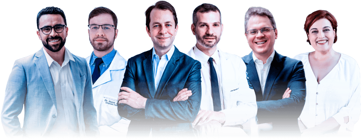 Fernando, Luiz, Susana, Filipe, Márcio e Francesco — atuantes em laboratório, clínica e ensino.